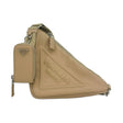 This is an authentic Prada Leather Triangle Symbole Crossbody crafted of soft calfskin leather in tan with matching leather trim, woven nylon strap, signature jacquard interior lining and silver-tone hardware. Exterior Features: zipper closure, one (1) optional coin purse and one (1) adjustable and removable shoulder strap. Interior Features: one (1) patch pocket.