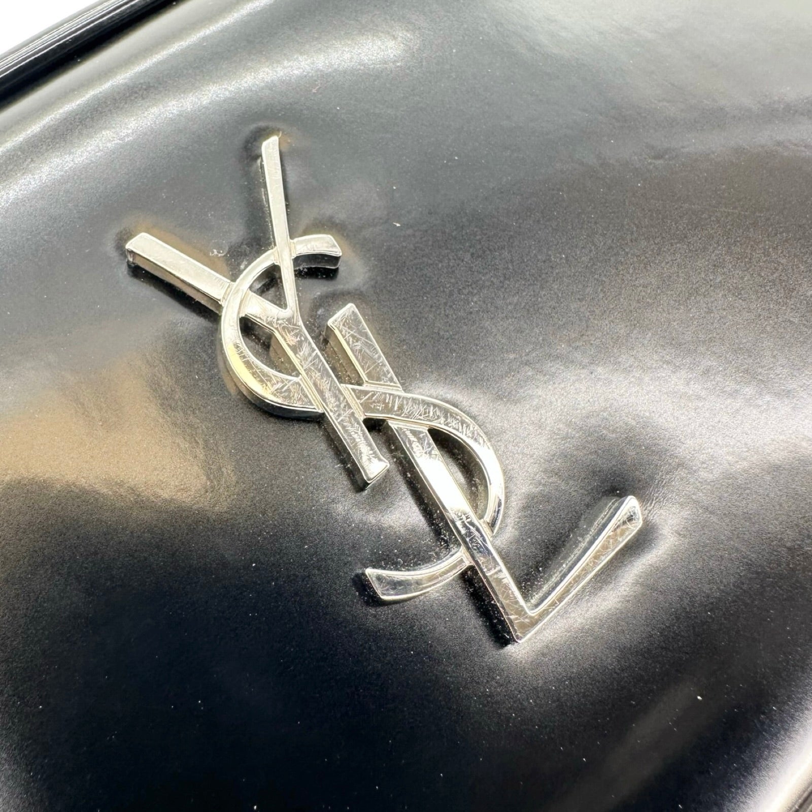 Unit price / perThis is an authentic Saint Laurent Mini Lou Camera bag crafted of Patent leather in Black with matching leather trim, black leather interior and silver-tone hardware. Exterior Features: zip top closure, one (1) back slip pocket and chain shoulder strap with leather strap pad. Interior Features: open compartment and three (3) card slots.