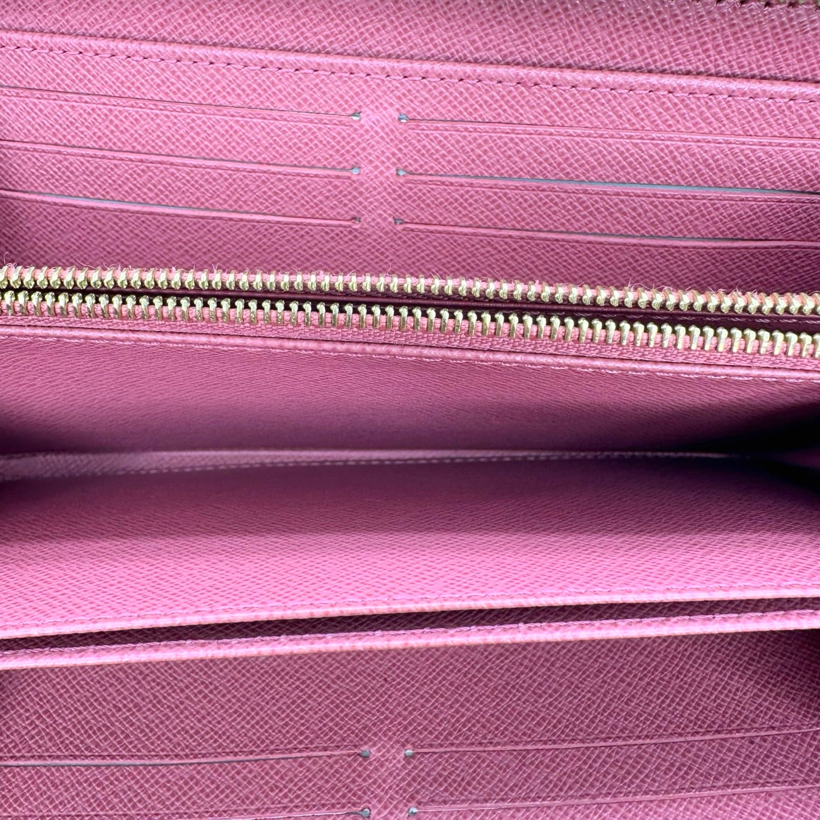 Unit price / perThis is an authentic Louis Vuitton Zippy Wallet crafted of Monogram Denim jacquard canvas with pink grained leather interior and gold-tone hardware. Exterior Features: zip around closure. Interior Features: three (3) large gusseted compartments, one (1) zip pocket, twelve (12) card slots, one (1) open compartment for bills and two (2) patch pockets.