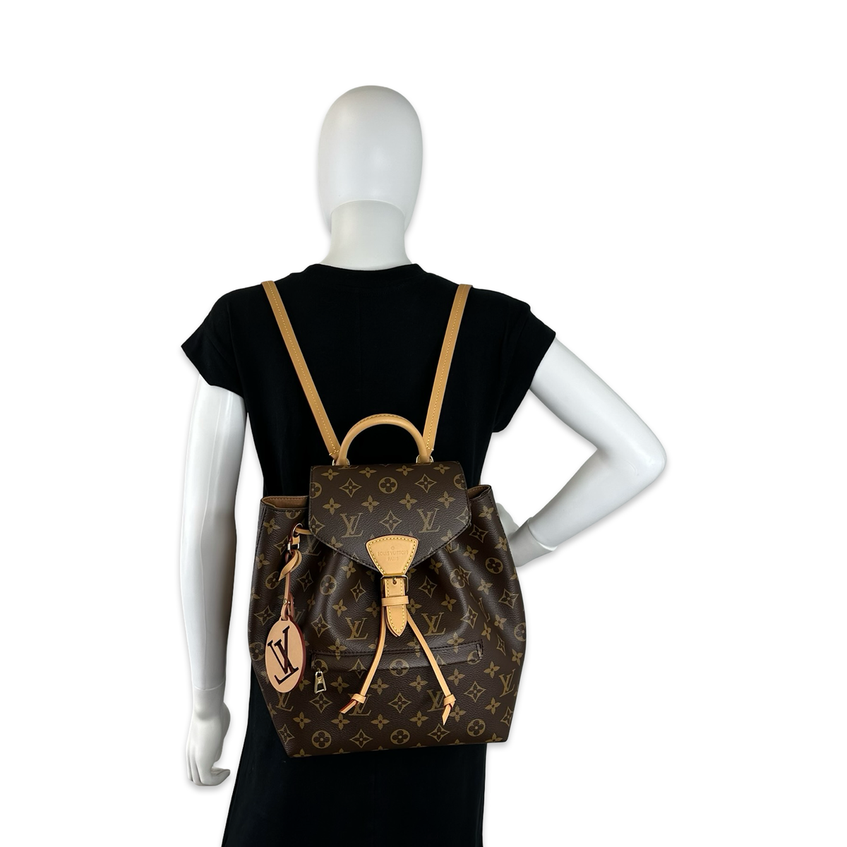Unit price / perThis is an authentic Louis Vuitton Montsouris NM MM Backpack crafted of Monogram coated canvas with natural leather trim, brown textile interior lining and gold-tone hardware. Exterior Features: drawstring and magnetic snap closure, one (1) front zip pocket, one (1) top leather handle, one (1) leather LV charm and two (2) adjustable leather backpack straps. Interior Features: open compartment and one (1) patch pocket.