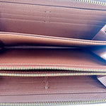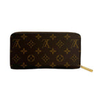 Unit price / perThis is an authentic Louis Vuitton Zippy Wallet crafted of Monogram coated canvas with brown grained leather interior and gold-tone hardware. Exterior Features: zip around closure. Interior Features: three (3) gusseted compartments, one (1) zip pocket, twelve (12) card slots and three (3) flat pockets.