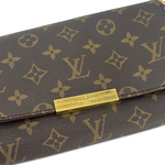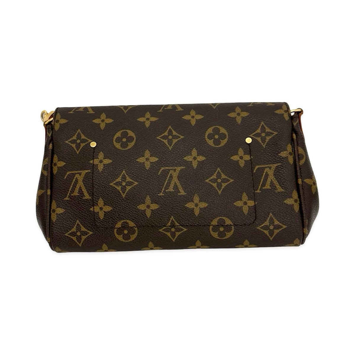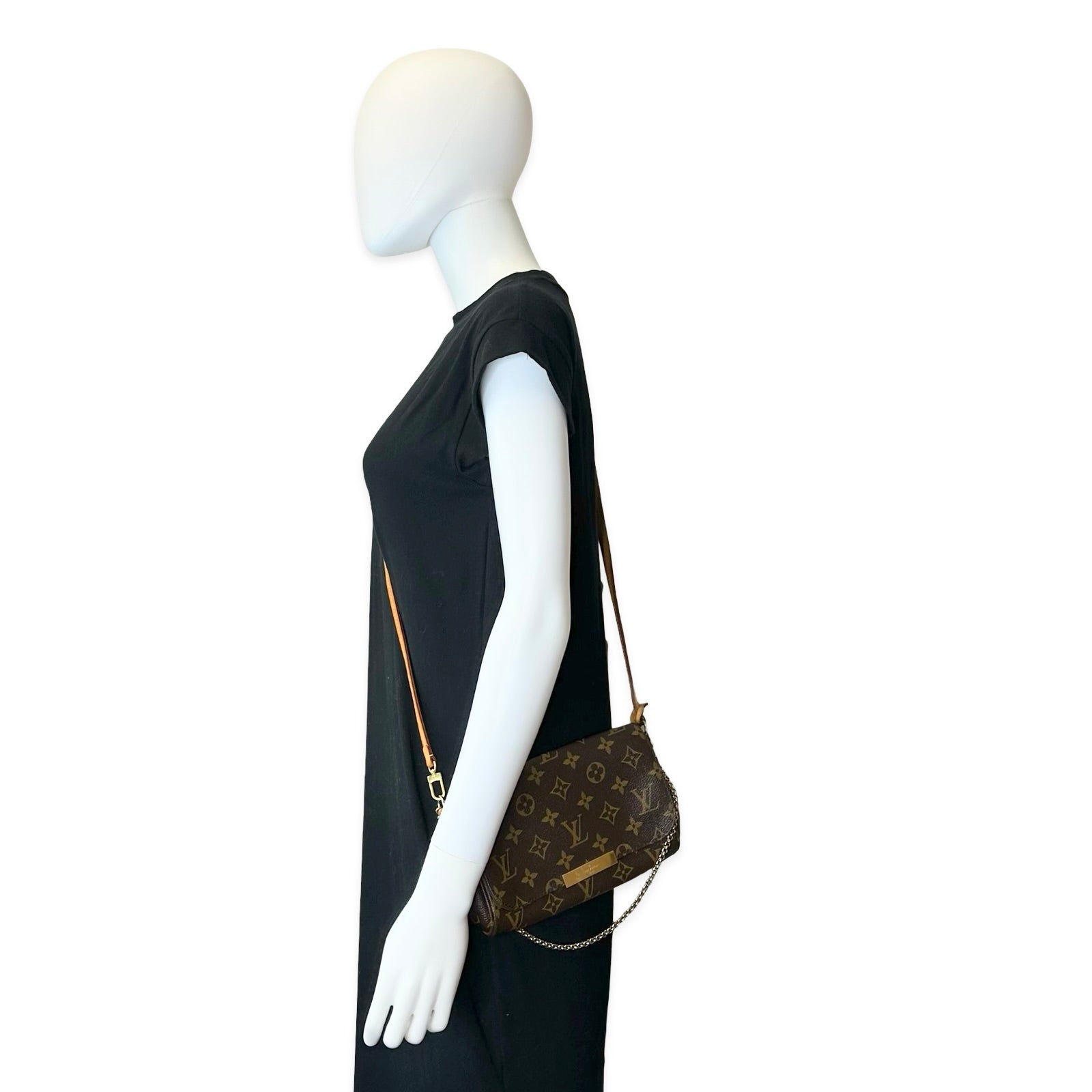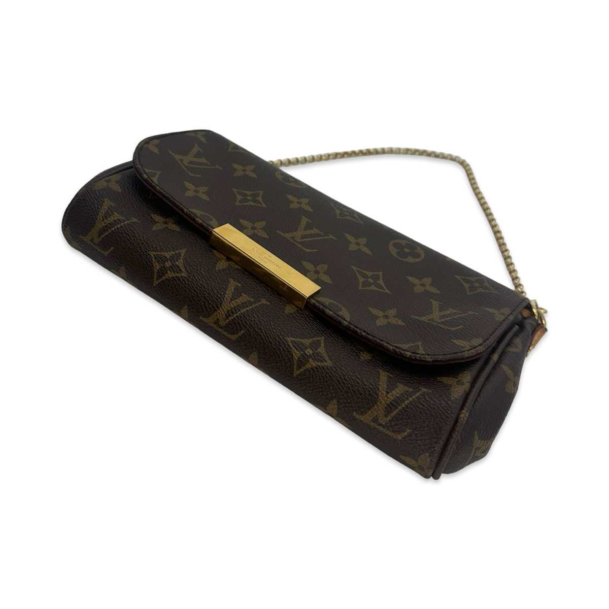 Unit price / perThis is an authentic Louis Vuitton Favorite PM crafted of Monogram coated canvas with wine fabric interior lining, natural leather trim and gold-tone hardware. Exterior Features: Gold-tone chain strap and optional brown leather shoulder strap and secure magnetic closure. Interior Features: One (1) flat pocket and one (1) open compartment.