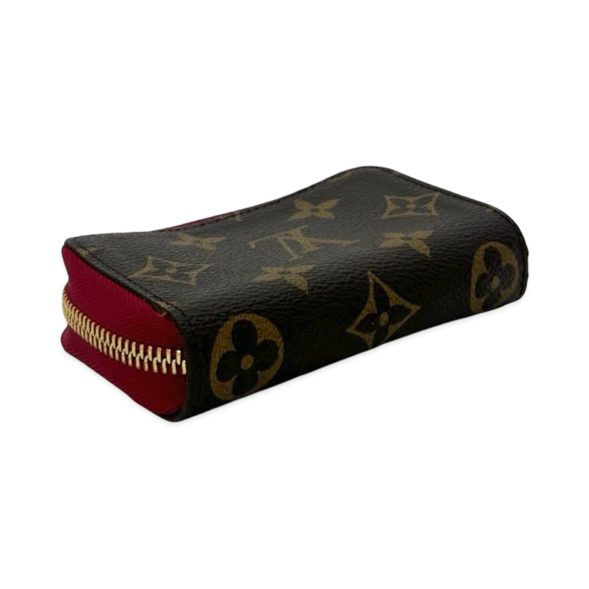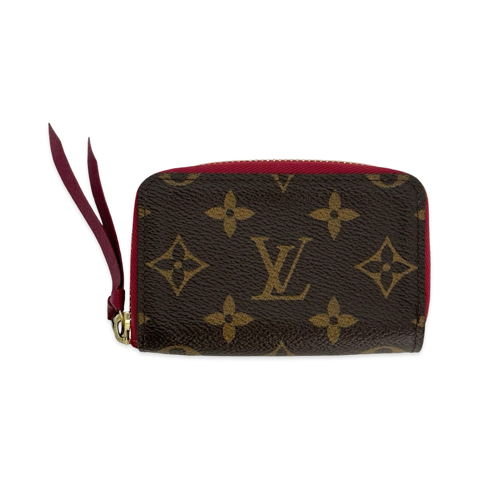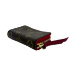 Unit price / perThis is an authentic Louis Vuitton Multicartes wallet crafted of Monogram canvas with red leather trim, red leather interior lining and gold-tone hardware. Exterior Features: zip around closure. Interior Features: five (5) partitioned compartments.