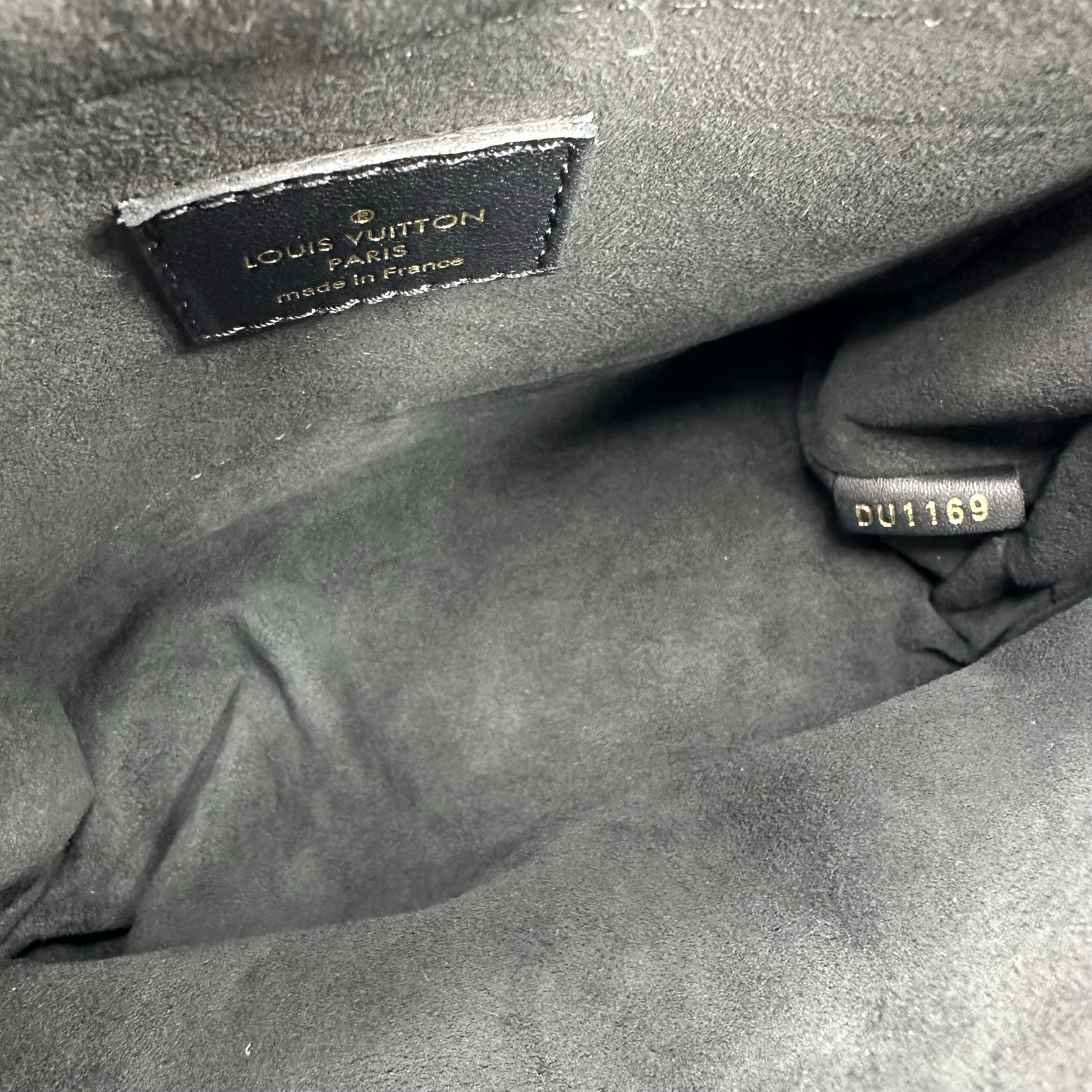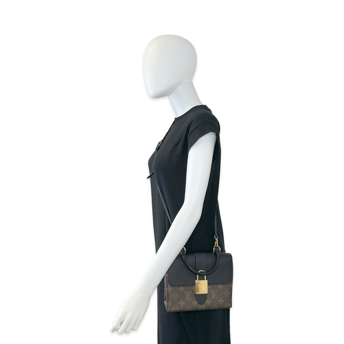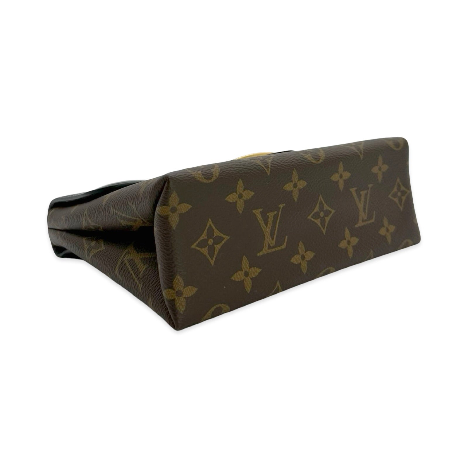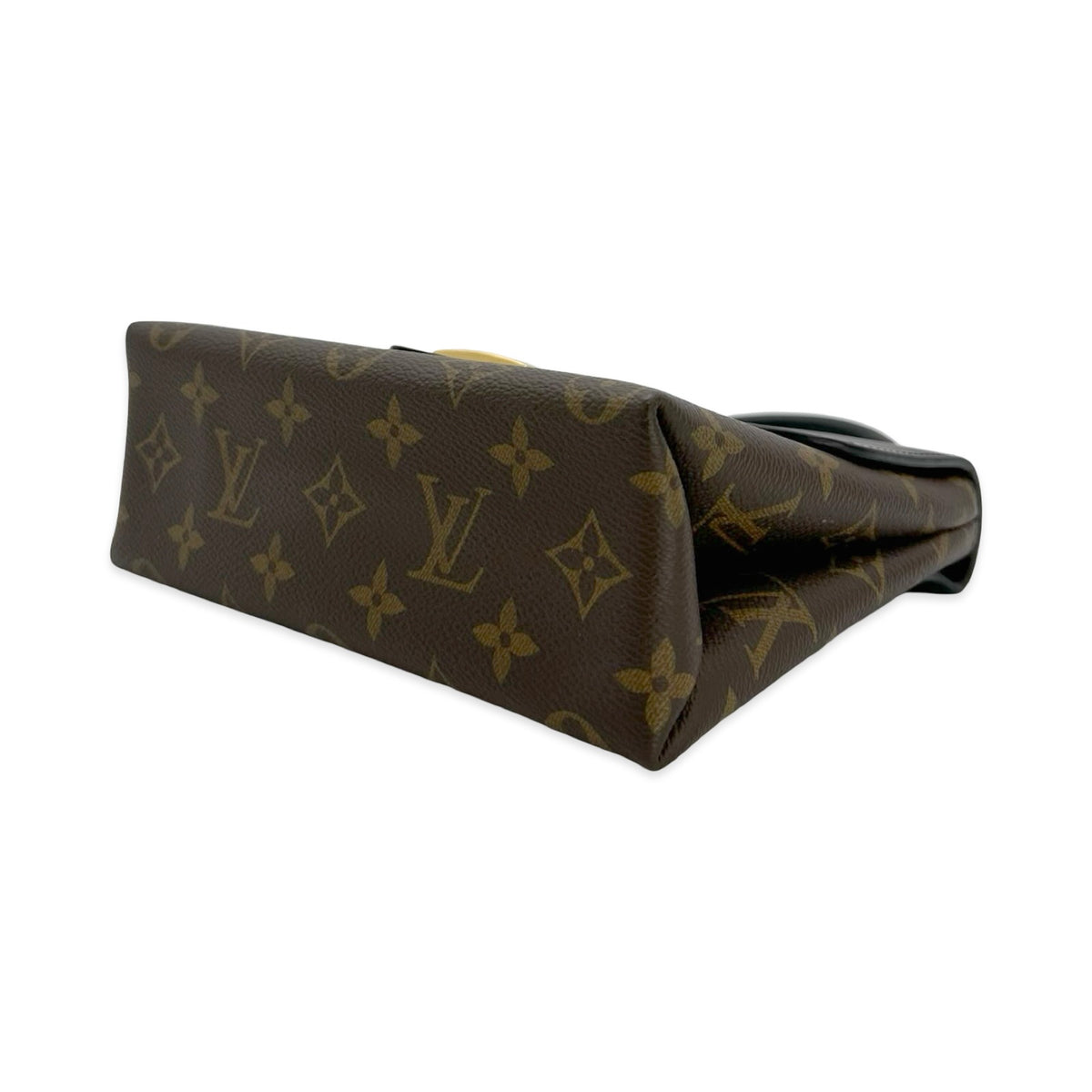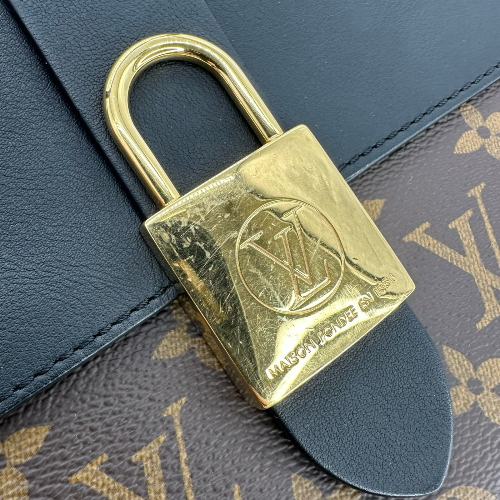 This is an authentic Louis Vuitton Locky BB crafted of Monogram coated canvas with black leather trim, black microfiber interior lining and gold-tone hardware. Exterior Features: magnetic snap closure, one (1) rolled leather top handle and one (1) removable adjustable leather shoulder strap. Interior Features: open compartment and one (1) flat pocket.